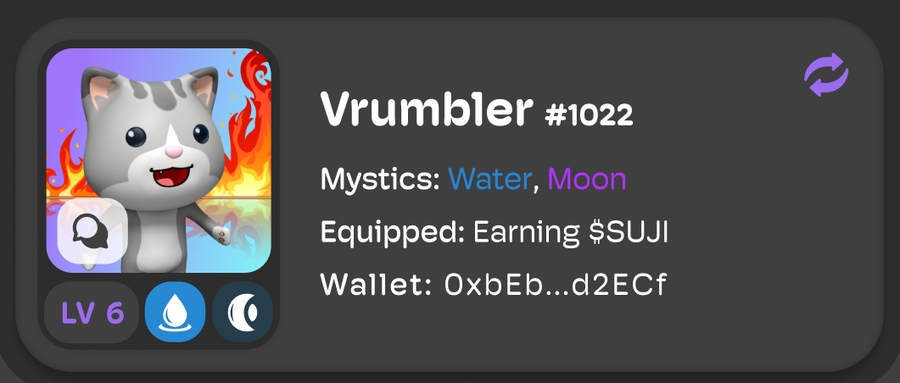 A player can only Equip one Mystic (anointed NFT) at a time. A player with an equipped Mystic gains that mystic type (maybe its Moon, or Moon+Shadow if its a dual mystic) and the current Power level of the mystic.