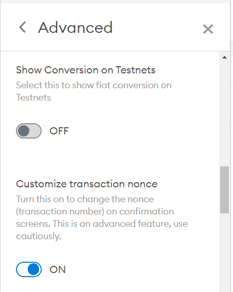 5. Turn on Customized transaction nonce under the same Advanced Tab in Step 2